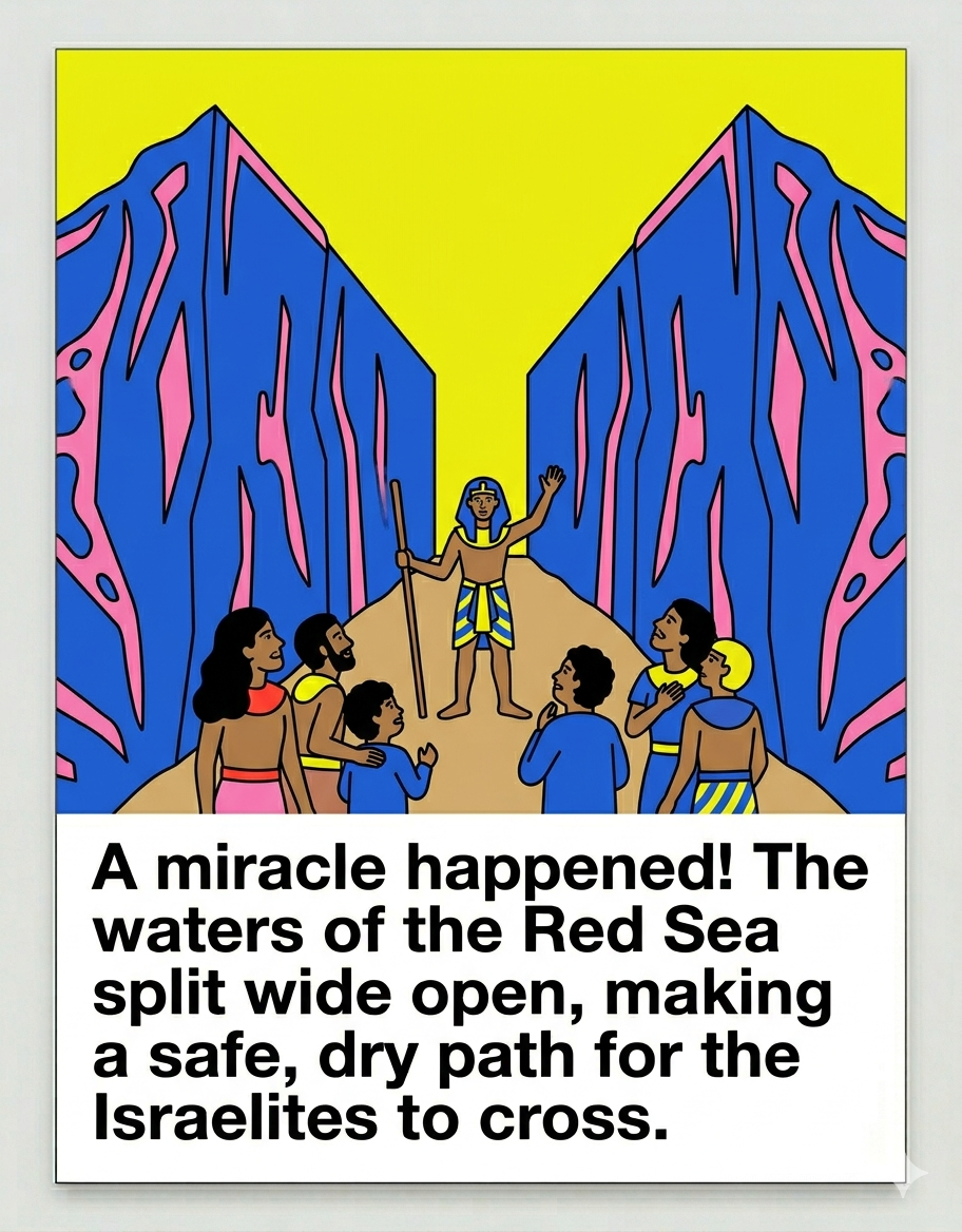 The ten plagues. The parting of the sea. The bitterness of slavery. The sweetness of freedom. All of it, told visually, page by page — designed to be passed around a table and read together, the way the tradition has always meant it to be.