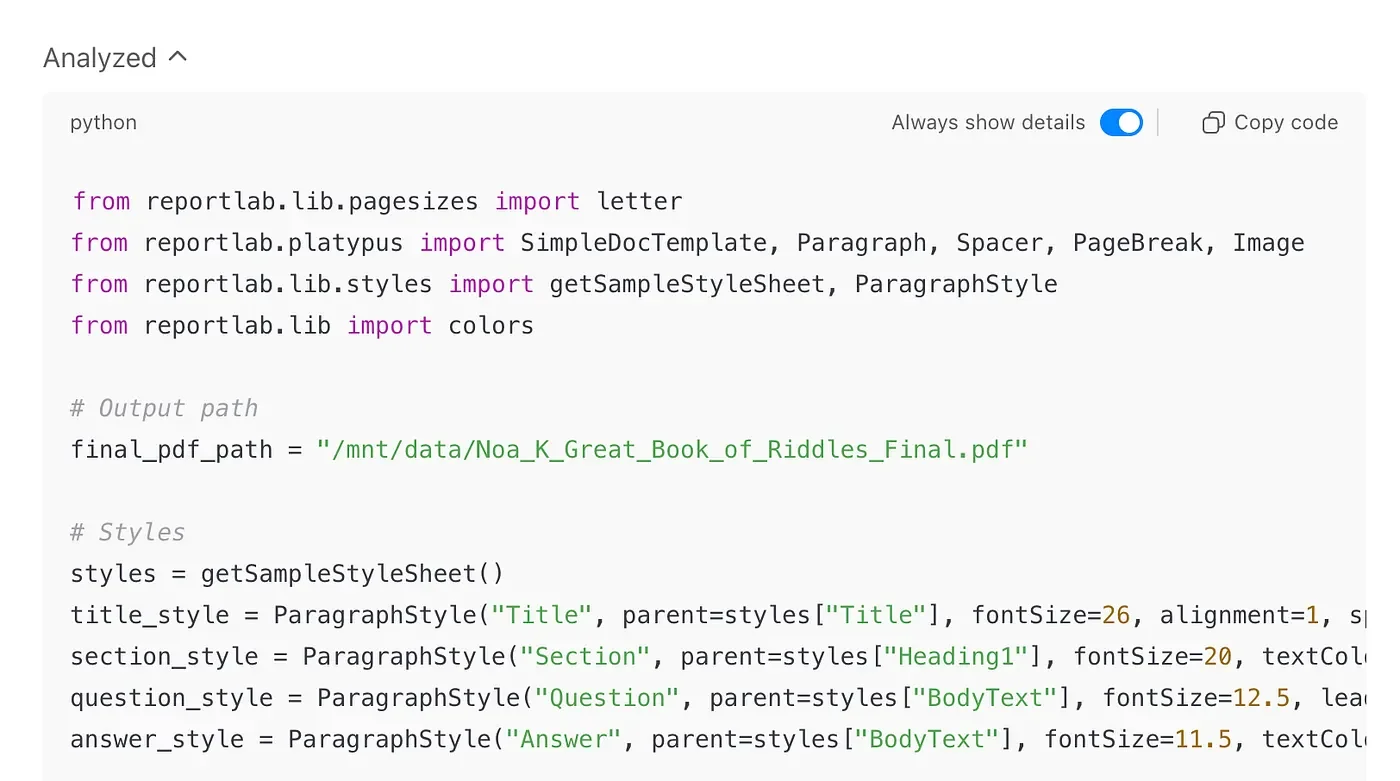 ChatGPT formatting the PDF