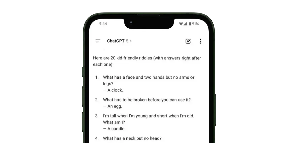 She agreed — but only if I didn’t see them first. So I typed: “Give me a list of 20 riddles appropriate for a 7-year-old.” And then closed my eyes and handed her my phone.