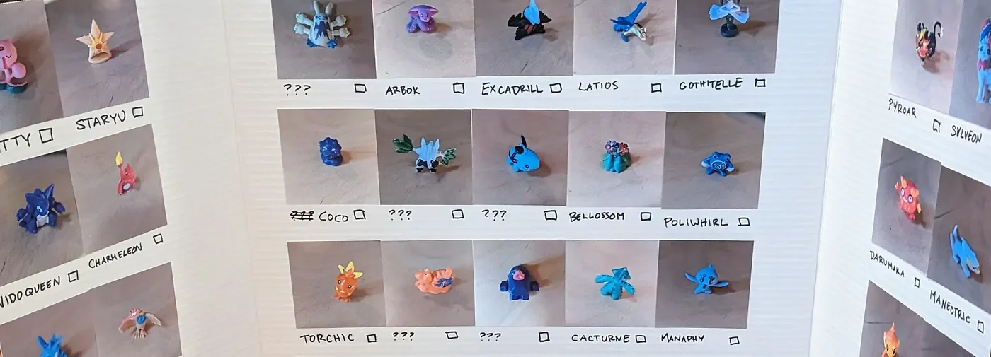When I poured the figurines onto the table, panic hit: how could I make a Pokédex if I didn’t even know which Pokémon were which? To me, they all looked like colorful blobs.